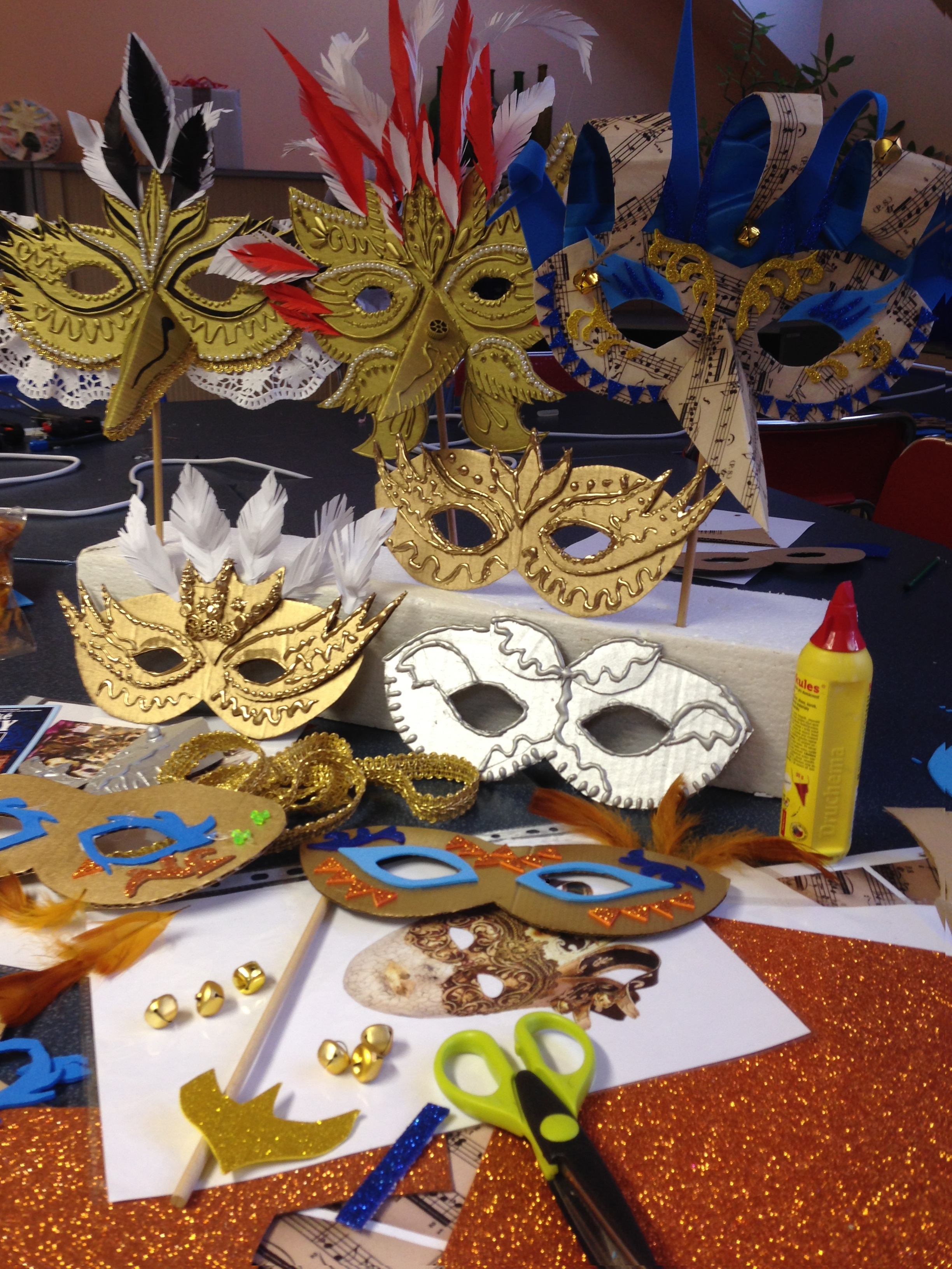 Masky se skutečně povedly. Nakonec jedno setkání nestačilo a škrabošky jsme dokončovali ještě příští týden.