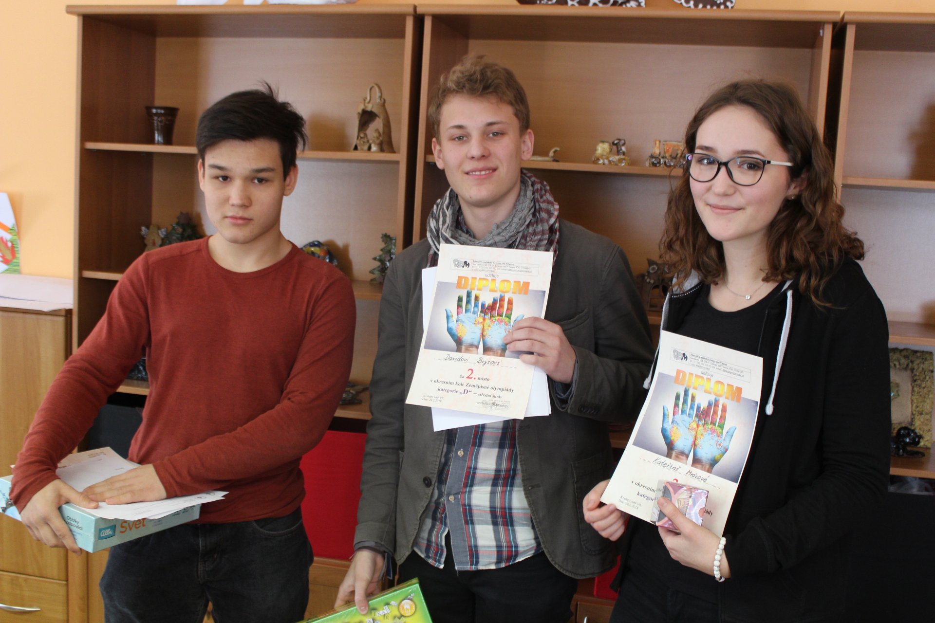 Zeměpis - kategorie D 1. místo: Filip Špaček, 2. místo: David Brys, 3. místo: Kateřina Mrázová
