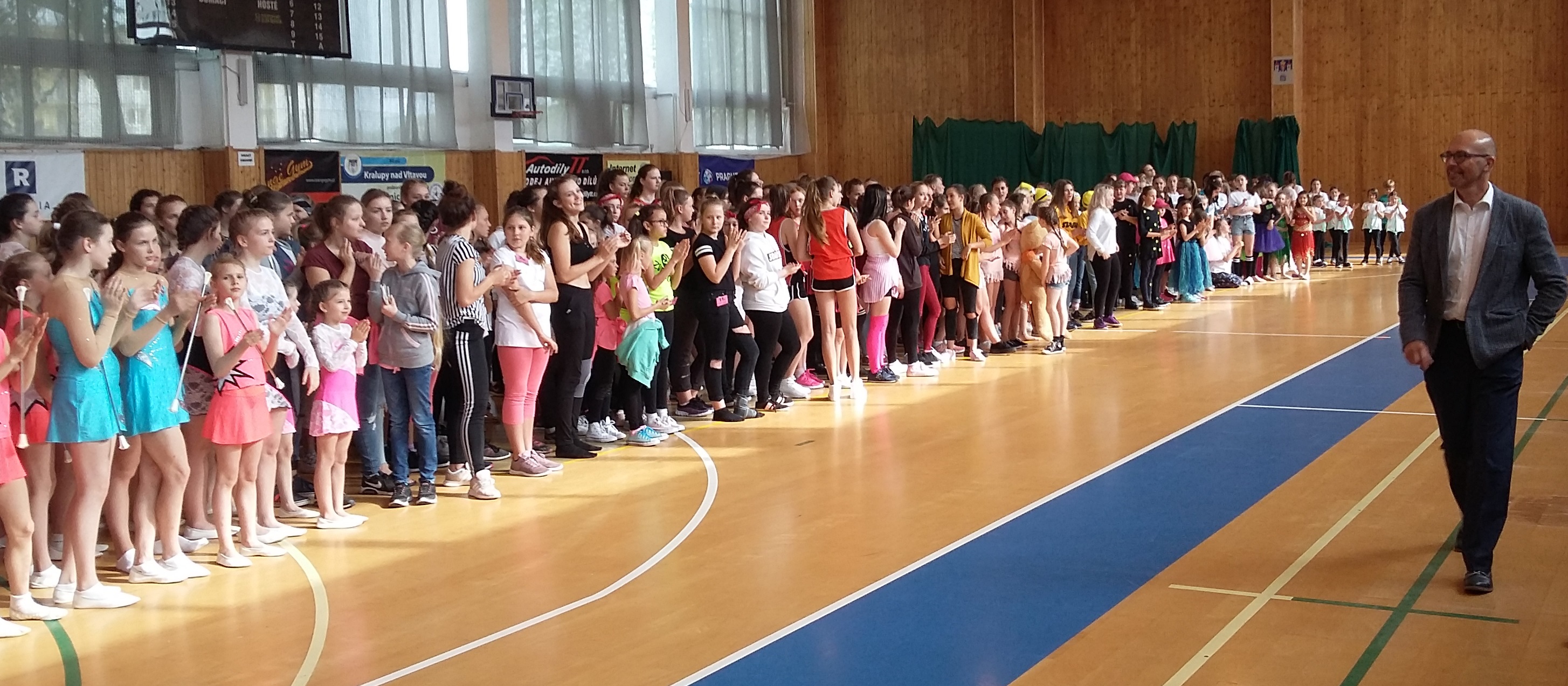 Tančíme o 106! Na páteční soutěž se sjelo téměř 400 dětí, aby se "utkaly" v kategoriích SKUPINA (5 a více tanečníků-tanečnic) a MINITÝM (2 až 4). Děti a jejich doprovod přišel přivítat starosta města a senátor za Středočeský kraj Petr Holeček a Ing. Pavla Hemerková z krajského úřadu - oddělení mládeže a sportu.
