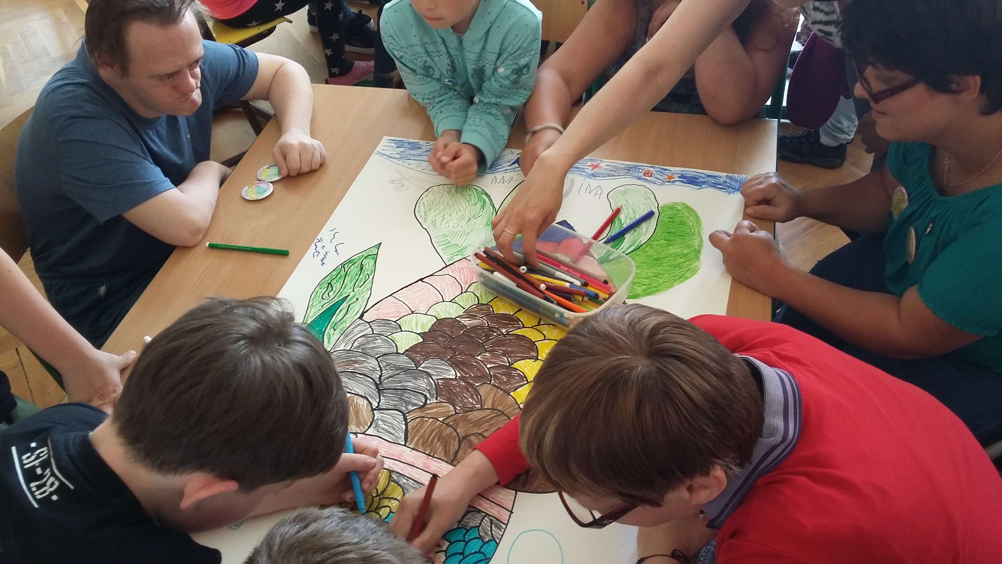 Navázali jsme na loňskou spolupráci s ústavem sociální péče - Domovem Pramen, a pro jejich letošní Festival porozumění jsme 22. května připravili výtvarnou dílnu. Tvůrčí setkání lidí s handicapem a běžnými dětmi se setkalo s velkým ohlasem. Příjemná nálada a přátelská atmosféra se nesla celým dopolednem, kterého se zúčastnilo 100 dětí. Krásná myšlenka spolupráce malých a "velkých" dětí vznikla před 18 lety v ústavu sociální péče Mnichov a každoročně se těší nemalému zájmu.