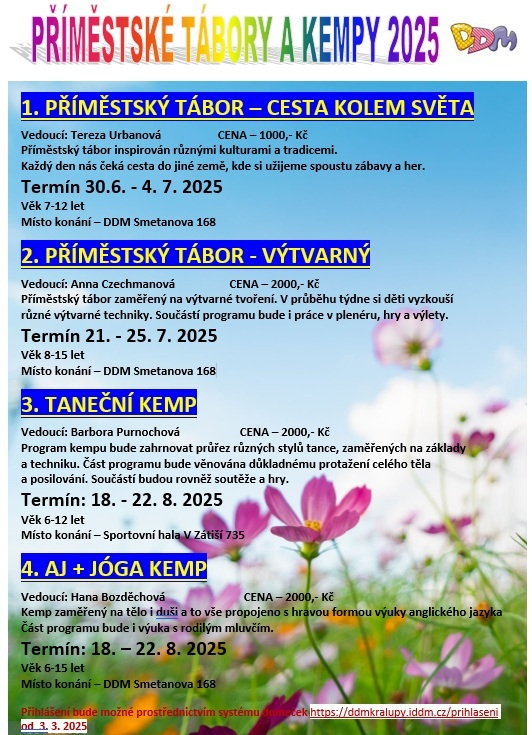 Přihlášení na jednotlivé pobytové tábory bude možné od 17.2.2025 od 10 h